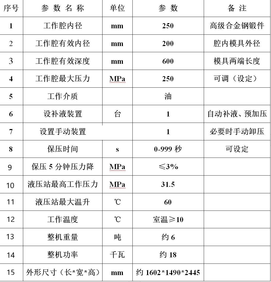 GDJ200/600-250-B干袋等靜壓機技術(shù)參數(shù)表